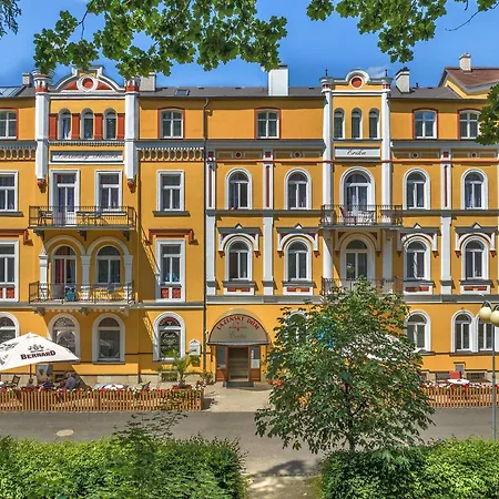 Das Hotel Lazensky Dum Erika Františkovy Lázně befindet sich in Františkovy Lázně, circa 10 Minuten vom Verkehrsmuseum entfernt und bietet einen Swimmingpool. Das Hotel verfügt über Billard und das Thermalbad sowie WLAN im ganzen Gebäude.